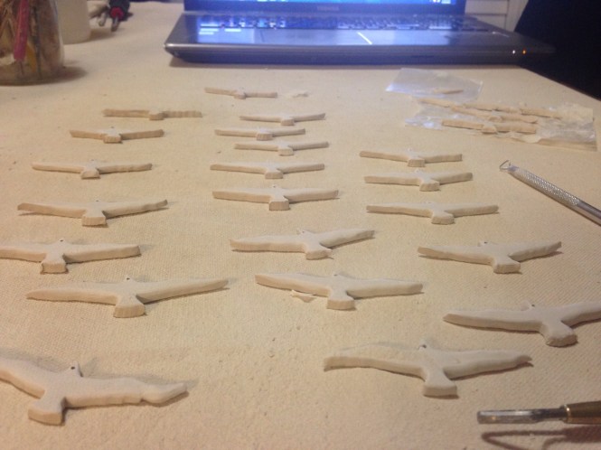 Smoothing birds GalleryJune 29, 2016December 11, 2016Gracie Jane Leave a comment Now that the birds have dried, tonight I sanded and smoothed their edges out. There was a lot of time put in to detailing the birds, but I enjoyed some good music and thoughts, and they are much cleaner looking now. Share this: Click to share on Facebook (Opens in new window) Facebook Like Loading... Related