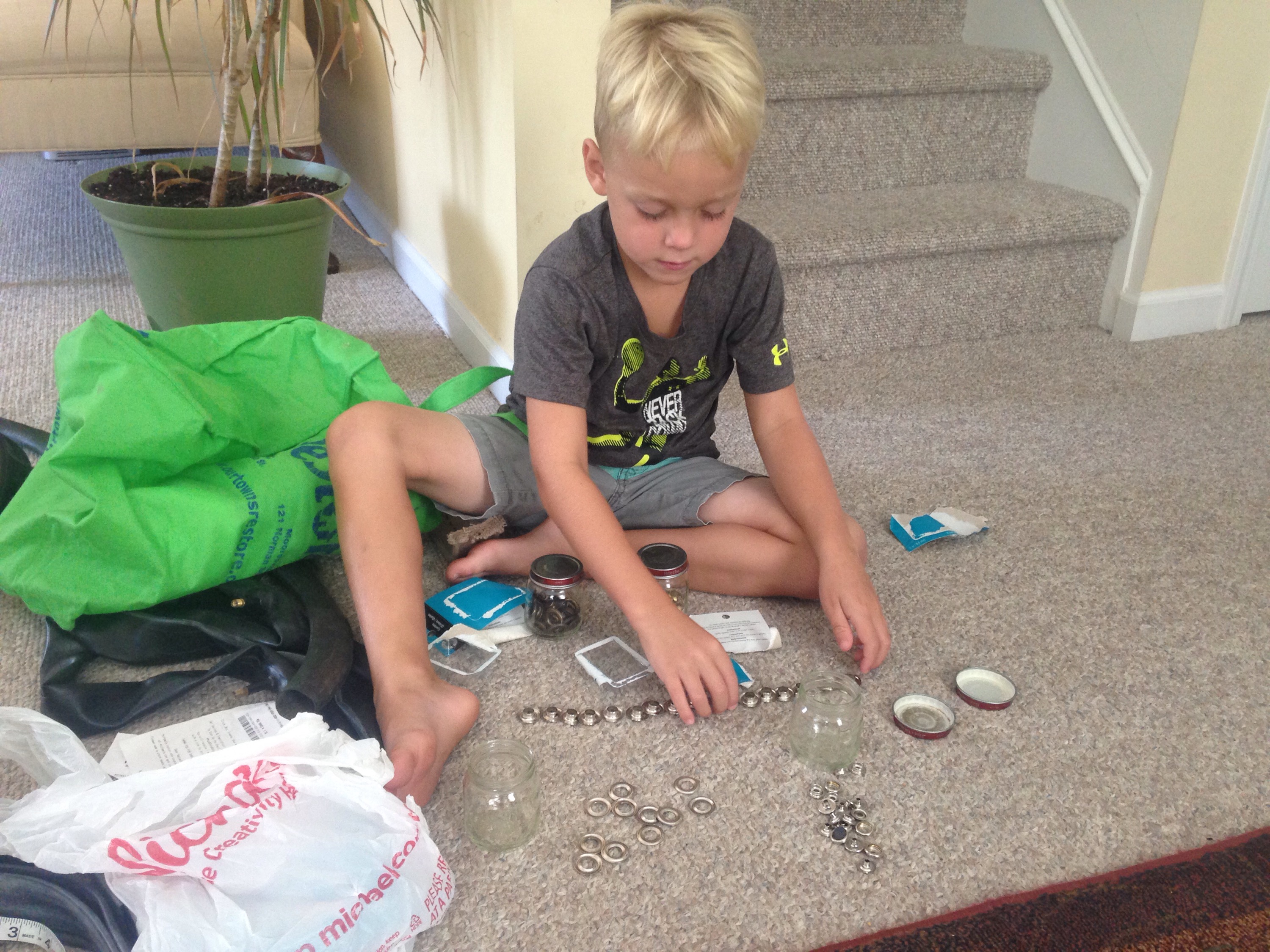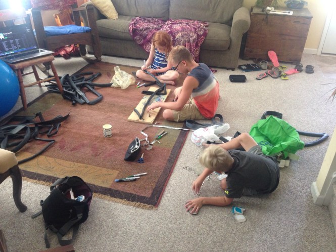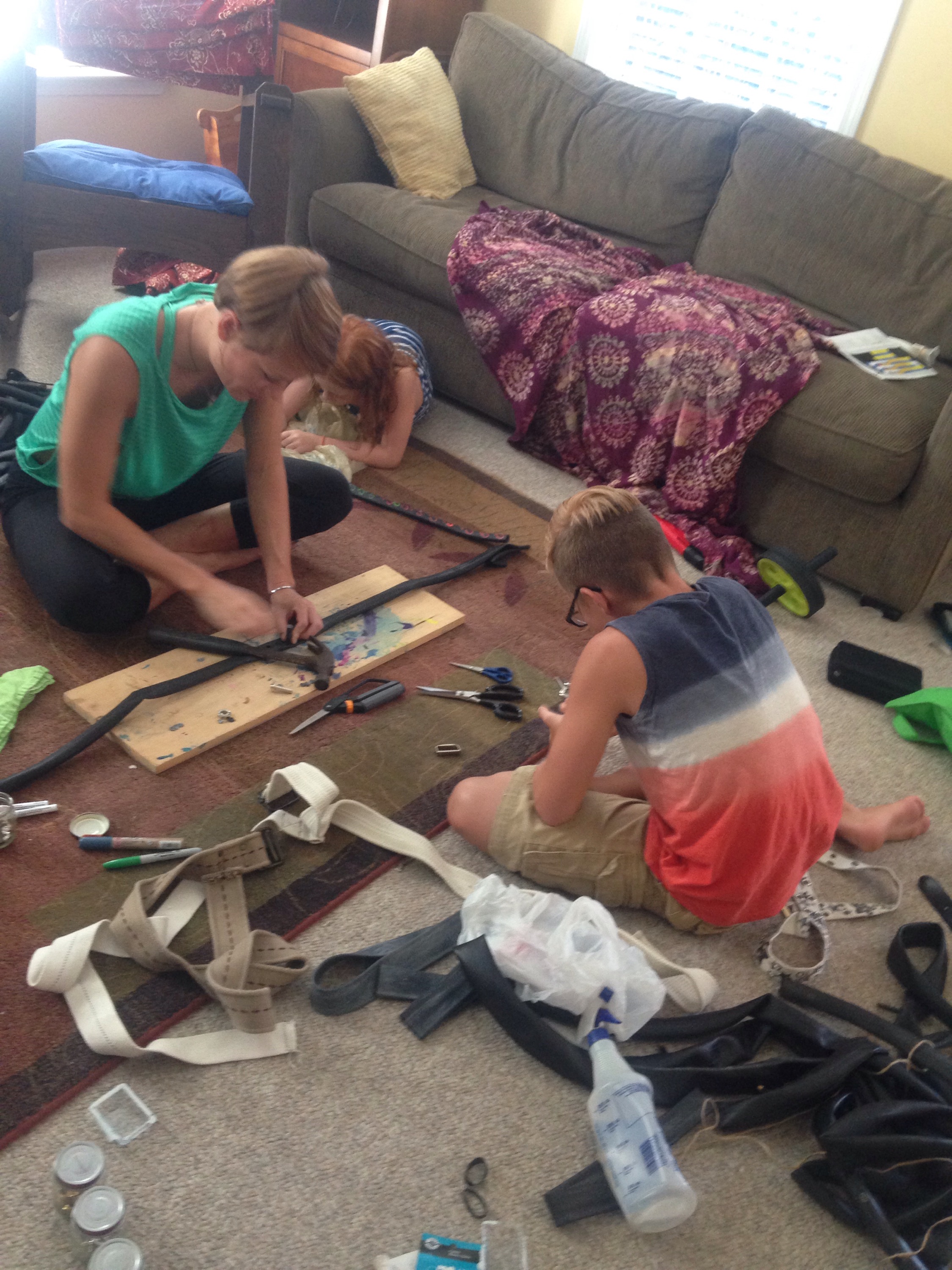 Team work July 20, 2016September 14, 2016Gracie Jane Leave a comment Today the kids helped me make some yoga mat straps and some belts. Miles counting grommets Isley practicing the logo Brodie ready to hammer some grommets Annelise making a sign Everyone working together Share this: Click to share on Facebook (Opens in new window) Facebook Like Loading... Related