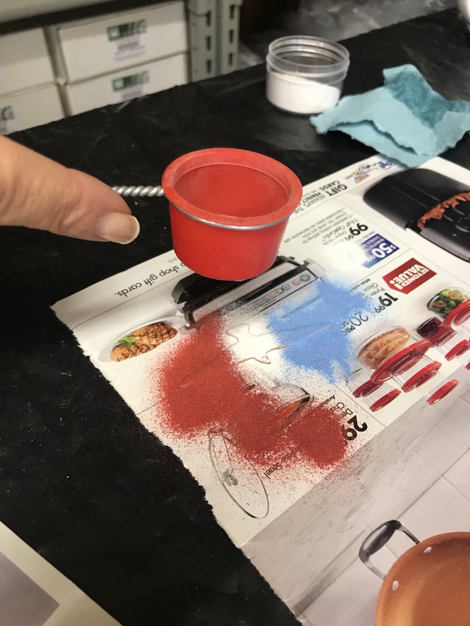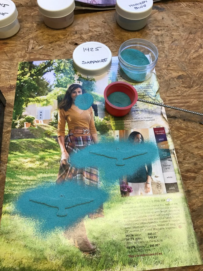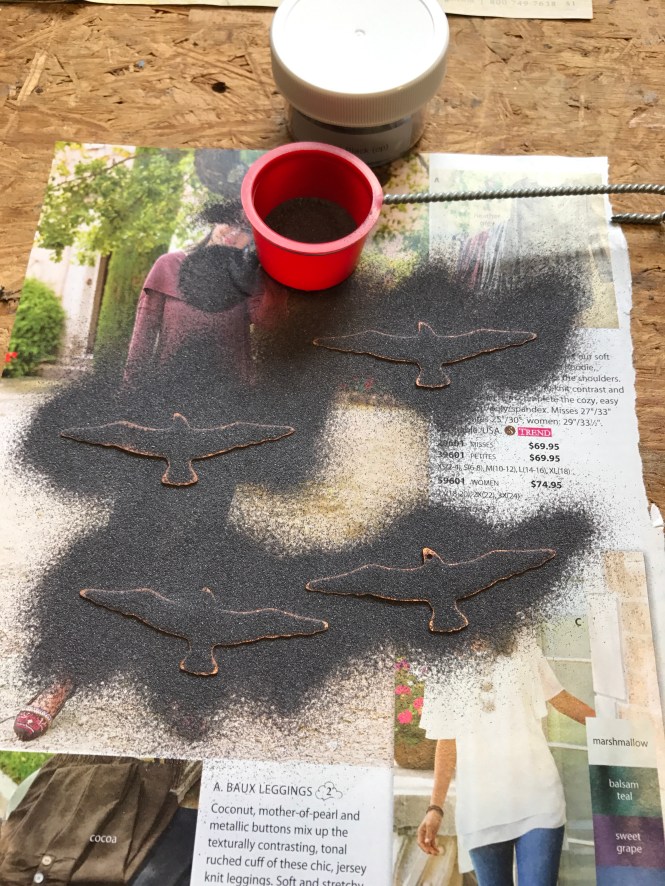 We will sprinkle a powdered glass called enamel onto the copper birds. This is where you can get creative with your color choices and designs.