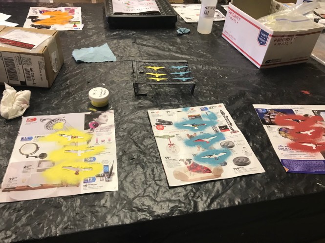 The next step is to transfer the birds to trays that will be placed inside the kiln.